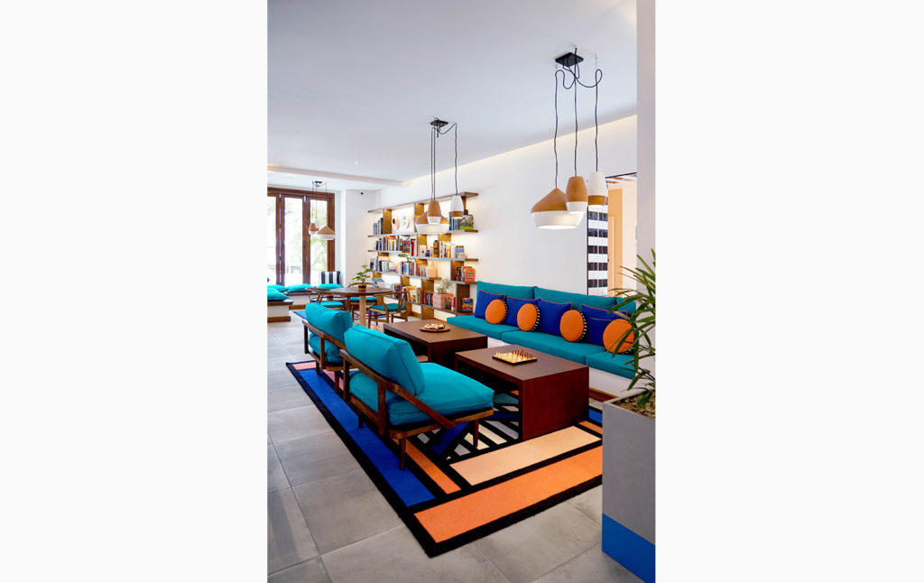 Highlights of the resort include a unique courtyard swimming pool, while the hotel’s 59 rooms – where blue skies and ocean views complement the playful palette of Walala’s scheme – are the product of a collaboration between the artist and Mauritian architect John-François Adams.