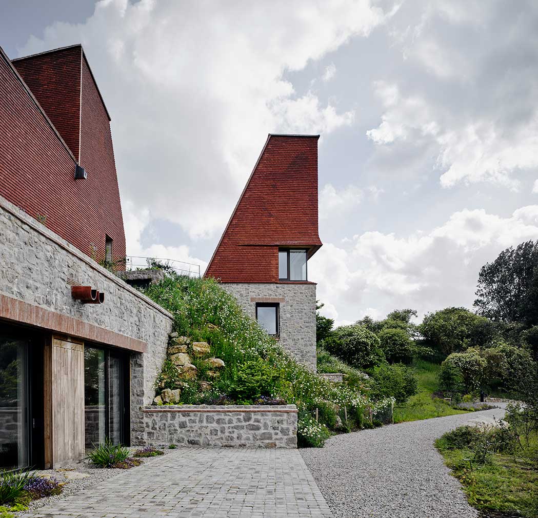 As well as referencing architectural vernacular of the nearby area, the architects also revived local crafts – using handmade peg clay tiles, locally quarried ragstone and coppiced chestnut cladding.
