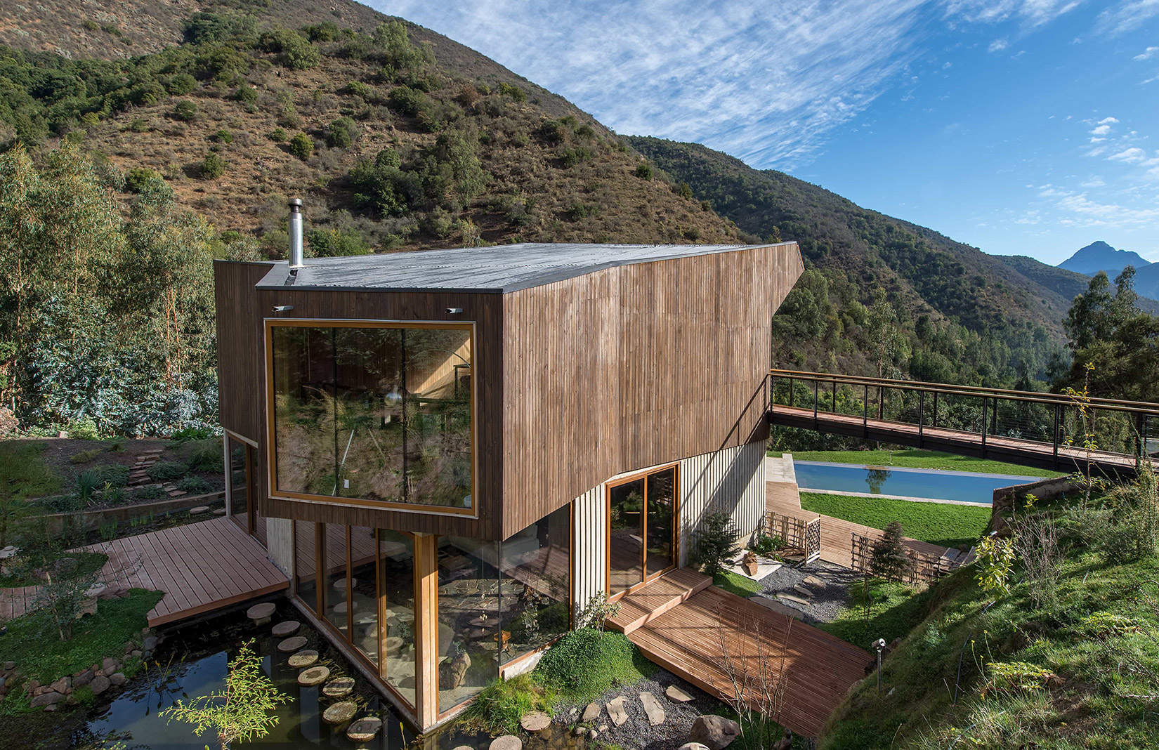 This timber-clad house treads lightly on its nature reserve surroundings – just southwest of Chile’s capital Santiago.