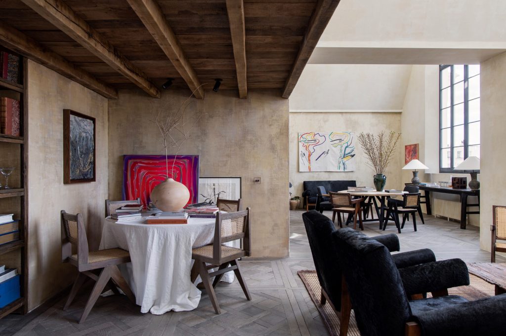Volume does much of the talking inside this penthouse on Blenheim Crescent in London. Once an artist’s studio, the space has been reworked into a two-bedroom apartment where height, texture and light are key to the experience within. The transformation is by Saskia Blyth of Blyth-Collinson Interiors, with an approach grounded in atmosphere and restraint.