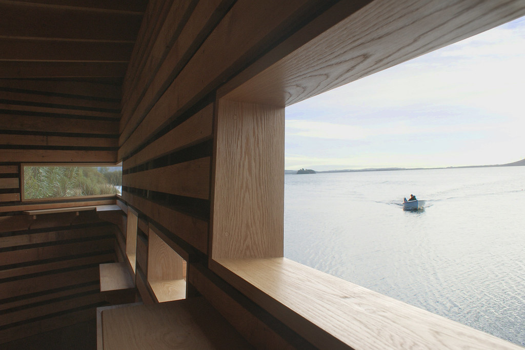 Often referred to as the Pheonix Hide, this serene, unassuming shelter on the west bank of Loch Leven, just south of Kinross, was completed in 2022 to replace Mill Hide, which was destroyed by arson the previous year. Following a £30,000 fundraising appeal, Icosis Architects built the new structure using Scottish Douglas fir and larch. They gave it an outward-sloping panoramic window with unbroken views across the loch.