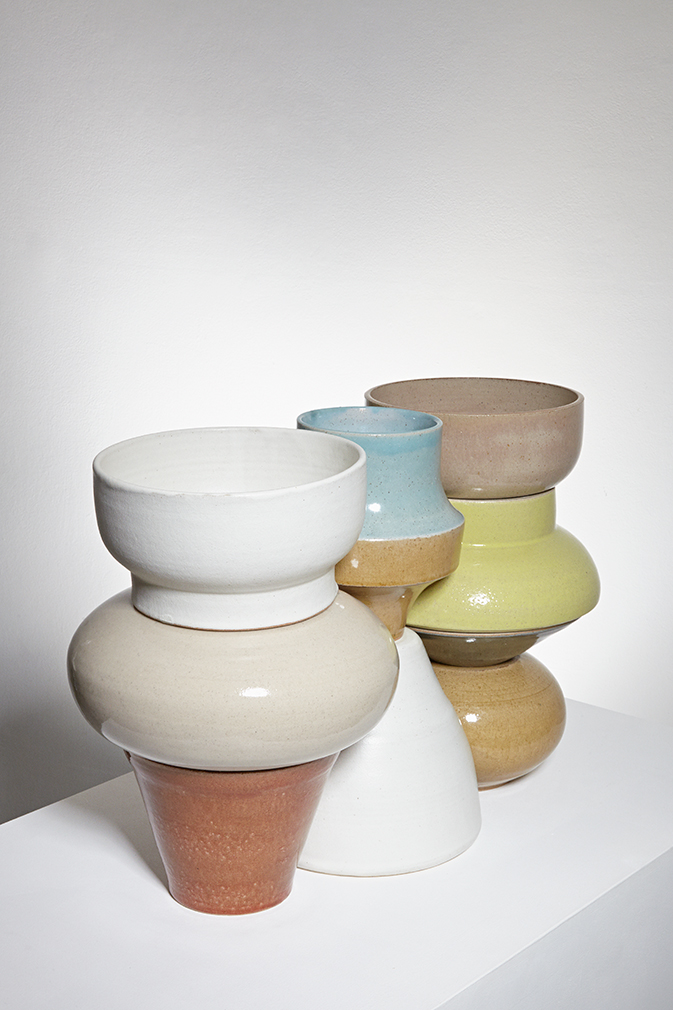 For London-based potter Nicola Tassie, living and working in London is a double-edged sword. ‘Space is both a problem and an inspiration for my work,’ she says. ‘I keep building more shelves to store the pots, I stack them up, design them so they fit together, and squash them into each other. Now my sculptural ceramics are all about space, how we are filling it up and the folly of that.’