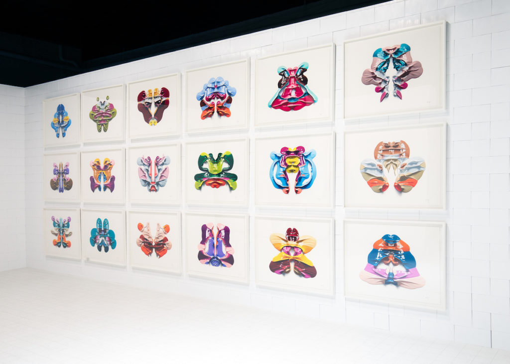 Mounted images from Cj Hendry’s Rorschach series. Courtesy of Cj Hendry Studio