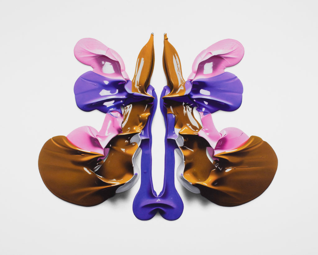 The artworks are said to be inspired by children’s symmetrical ‘squish paintings’, created by painting half a sheet of paper and folding it in half to form its mirror image.