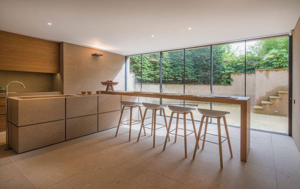 ‘The feeling of 5 Cannon Lane is one of calm and serenity; it’s almost a meditative space,’ says Silvestrin. ‘To achieve this simplicity, technology is mostly hidden and there is no ornamentation of any kind. However there is drama – the 42 step stone staircase that leads down to the pool and spa which recalls an ancient site, for example.’