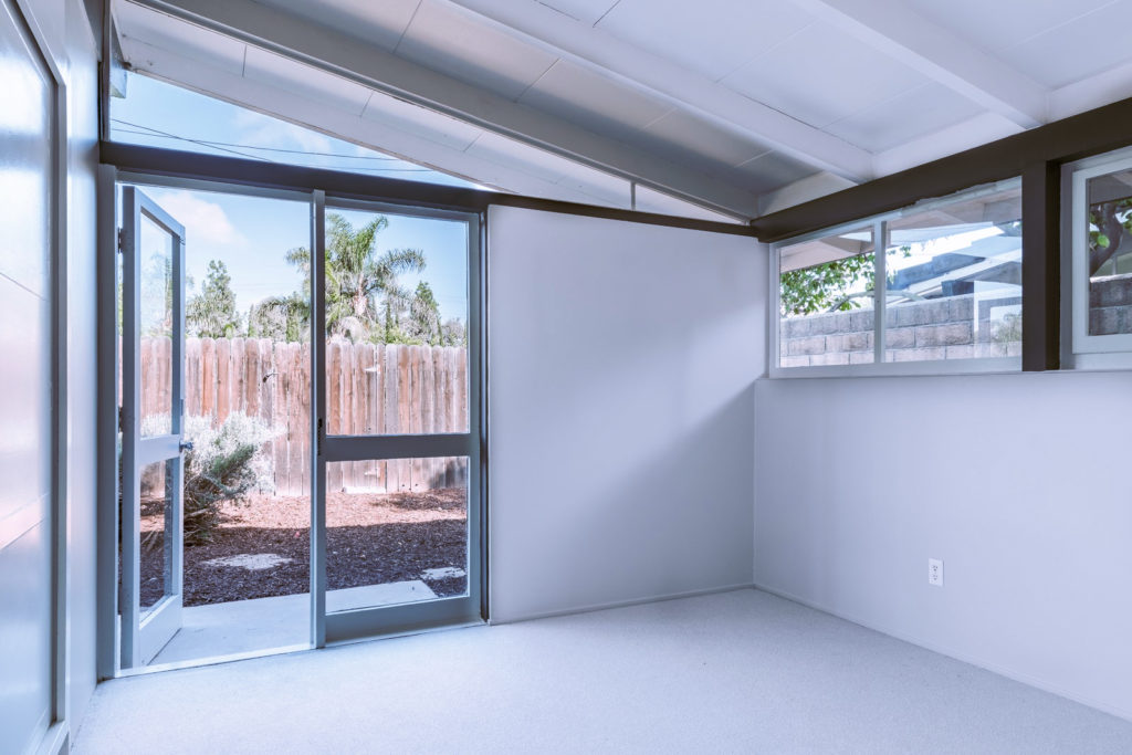The bathroom and kitchen have been updated, but an original 1950s Western Holly oven has been kept alongside cabinetry. Its three bedrooms are blank canvases that open onto the backyard and could be used as studio or office space by the house’s new custodians.
