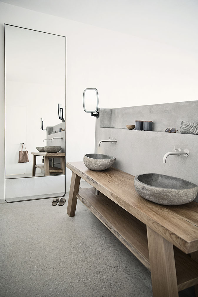Interiors pay homage to craftsmanship: polished concrete and crisply rendered walls juxtapose raw timber surfaces in the kitchen and rugged stone fireplaces in the living room. Hemp rope lamps and storm lanterns are locally made, while occasional pops of colour come from furnishings throughout the four-bedroom island home.