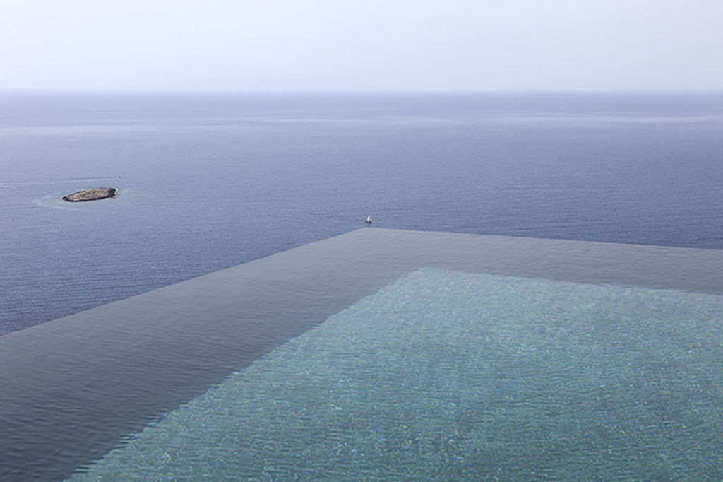 The Greek holiday home is available to rent exclusively via Off Grid Hideaways from €8,650 per week and has several shaded terraces including an al fresco dining patio and seating area next to the infinity pool.