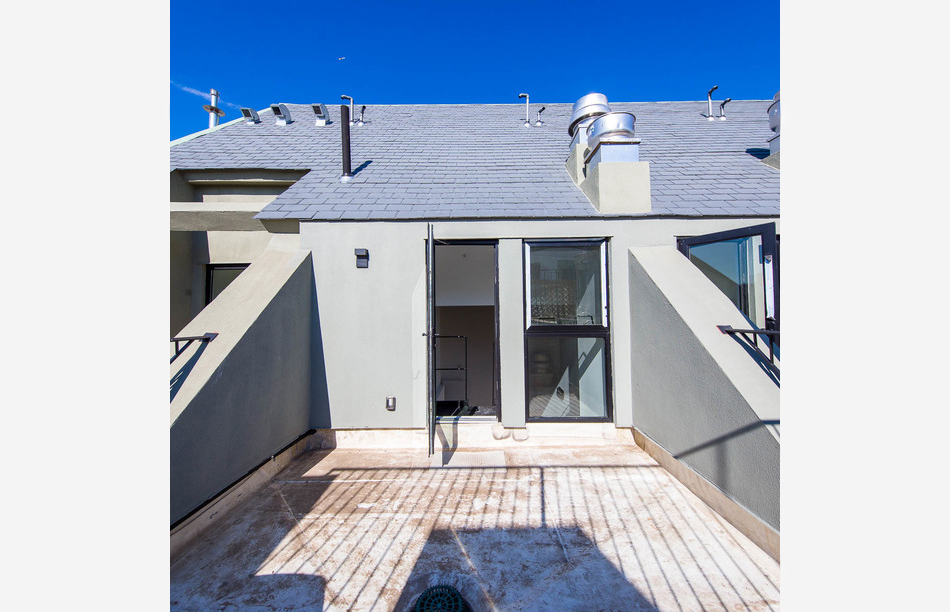 A ladder from one of the bedrooms leads out to an outdoor roof deck, and interiors have been given a neutral paint job that lets the architecture do the talking.