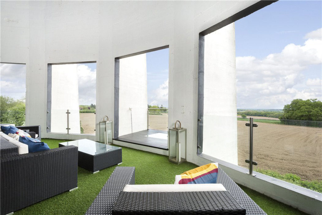 The 1930s structure in the village of Burton Green is 75-metres metres high and has concrete walls that are up to a metre thick. Its present owners spent 18-months transforming the industrial water tower – which was decommissioned in 2004 and is on the market via Knight Frank – into a 6 bedroom country home.
