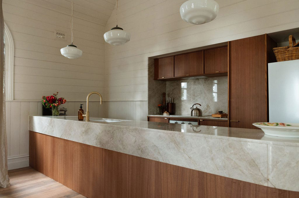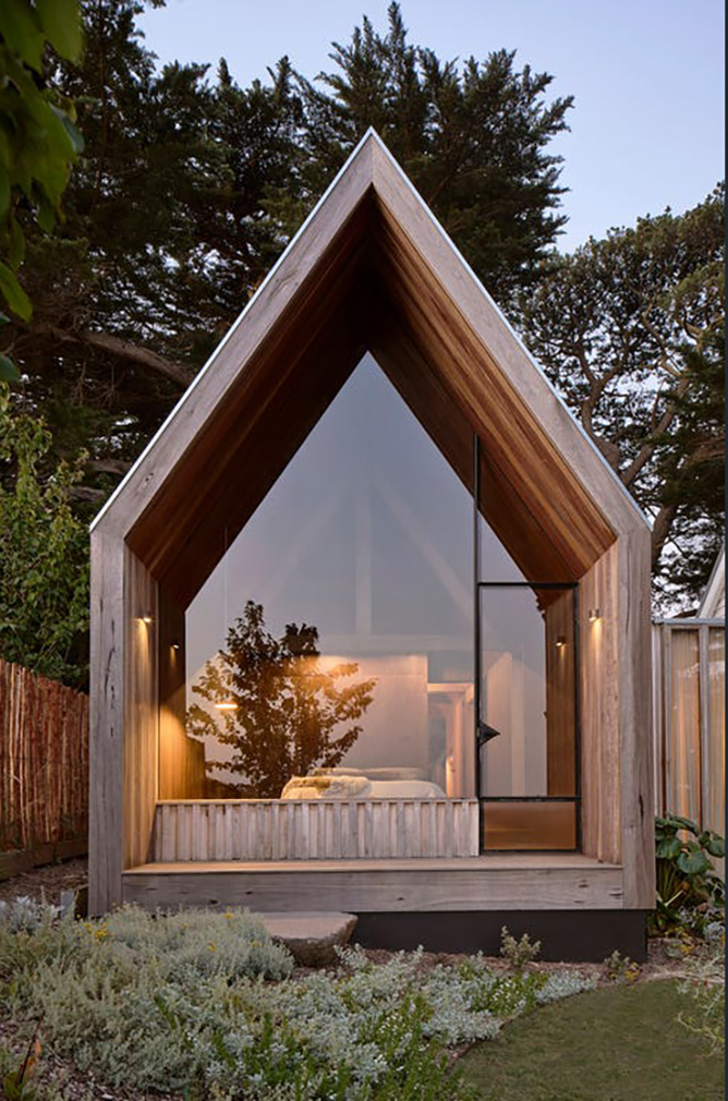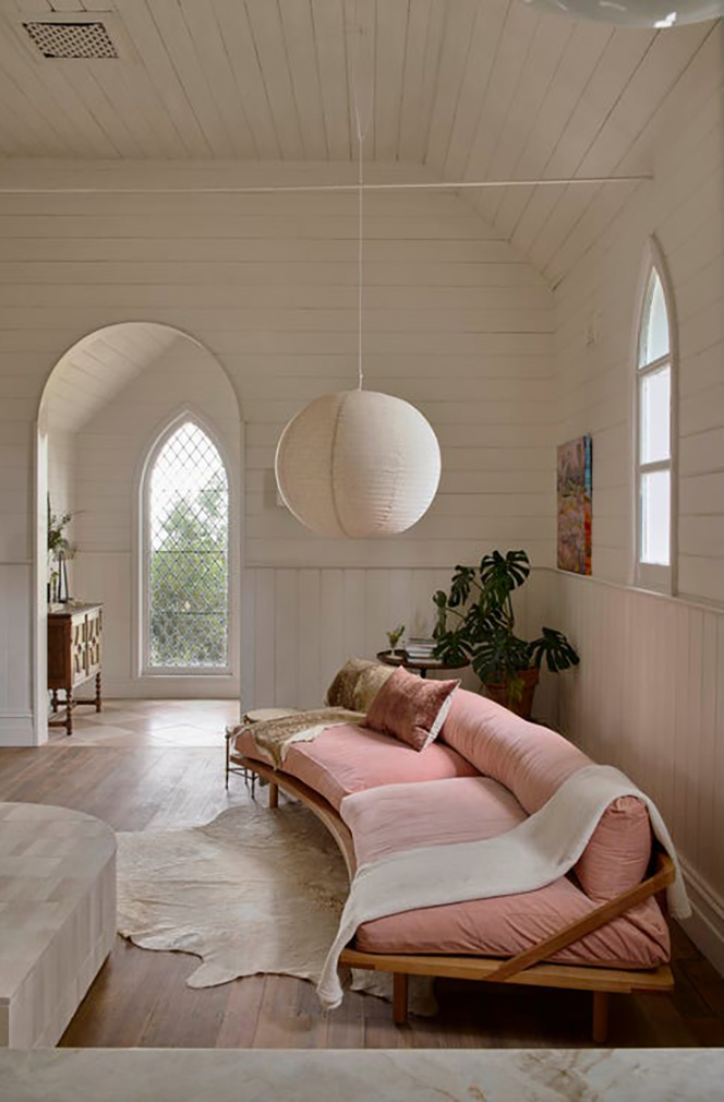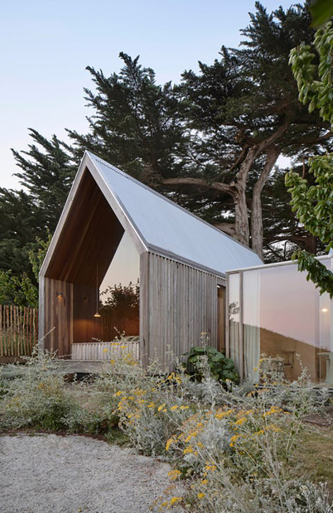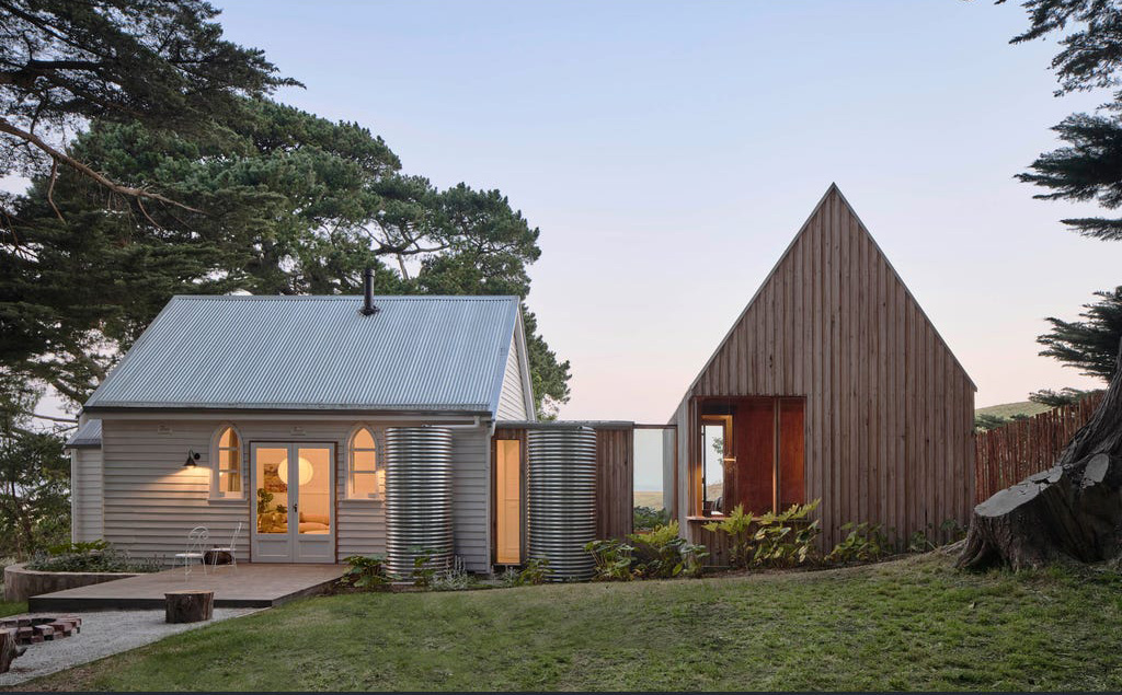 Amid open farmland on the southeastern tip of Australia, this former church goes back to 1902 yet its current incarnation is right up to date. The original building remains intact, its single-volume interior now used as a living space beneath Gothic arched windows but it benefits from a glassy modern extension.