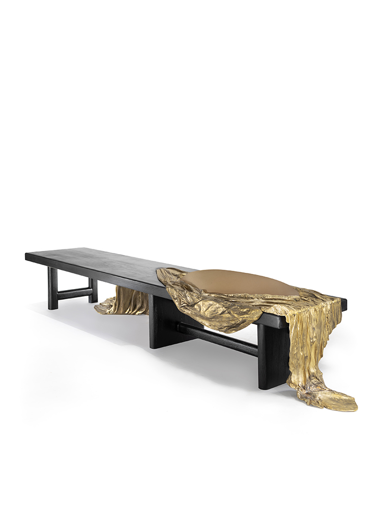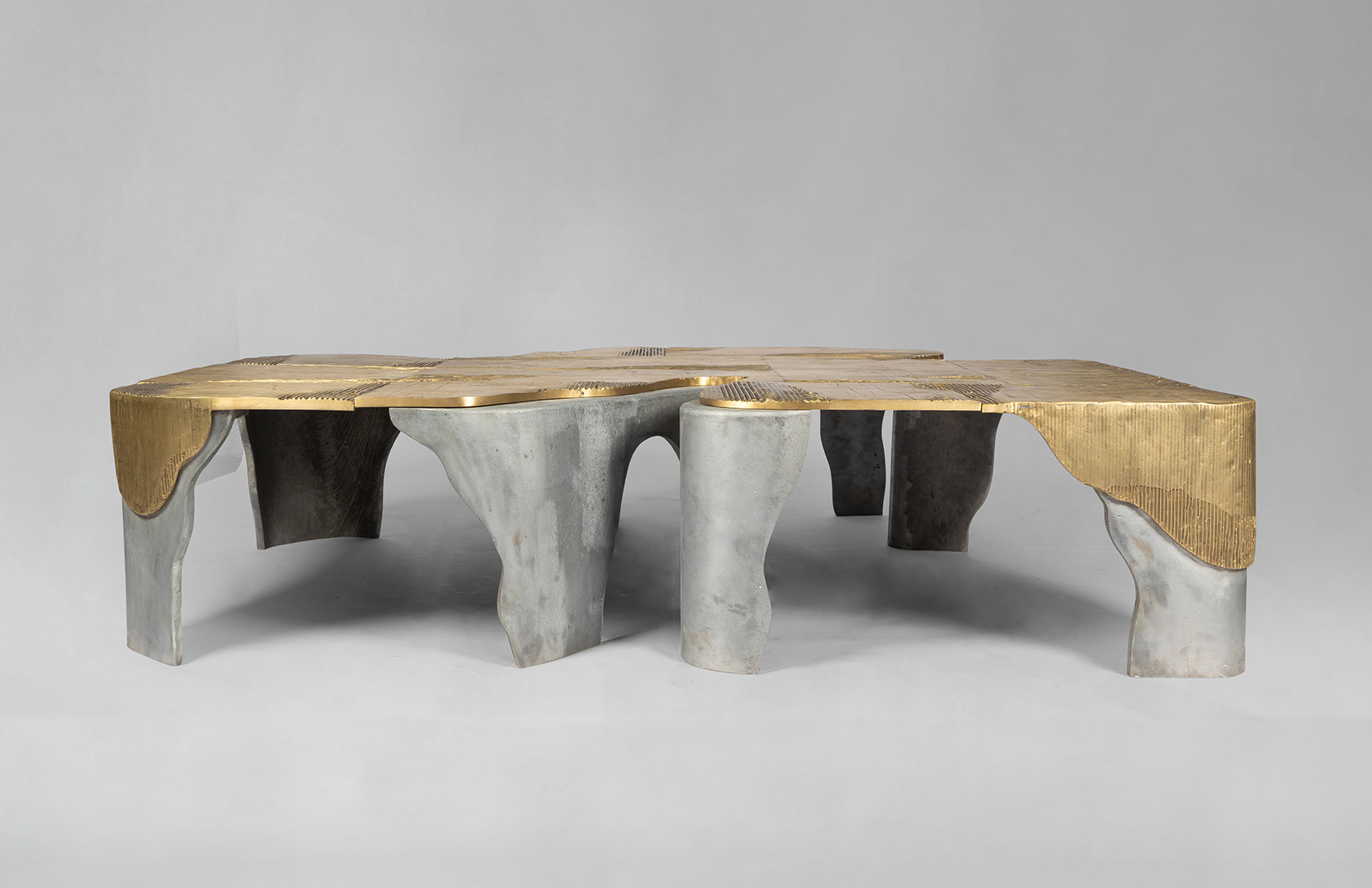 Falling under the umbrella of K2 India, a well-recognised name in Indian architecture, Kohelika Kohli’s brand is more exploratory, experimenting with the juxtaposition of materials to create bespoke, collectible furniture. At the show, her pieces demonstrate the art of elevating materials often dismissed as waste or considered too ordinary.