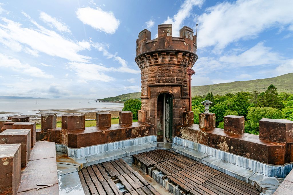 Outside are 18 acres of grounds with ornamental gardens, formal terraces and exotic plantings with a small golf course and squash court. Together they’re included in Scotland’s Inventory of Gardens and Designed Landscapes. Visitors can access the property by regular ferry service from Mallaig.