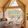 Each of Eastwind Lake Placid’s 25 units – which includes 18 hotel suites and seven glamping cabins that start from $259 USD per night – are designed differently, although all of them quietly stimulate the five senses. Footstools are angled just so, Nemadji pottery rests atop smooth wooden surfaces, while Mirrors of The Soul by Kahlil Gibran awaits a curious reader. Keen bookworms can also dip into the hotel’s library-esque living room.