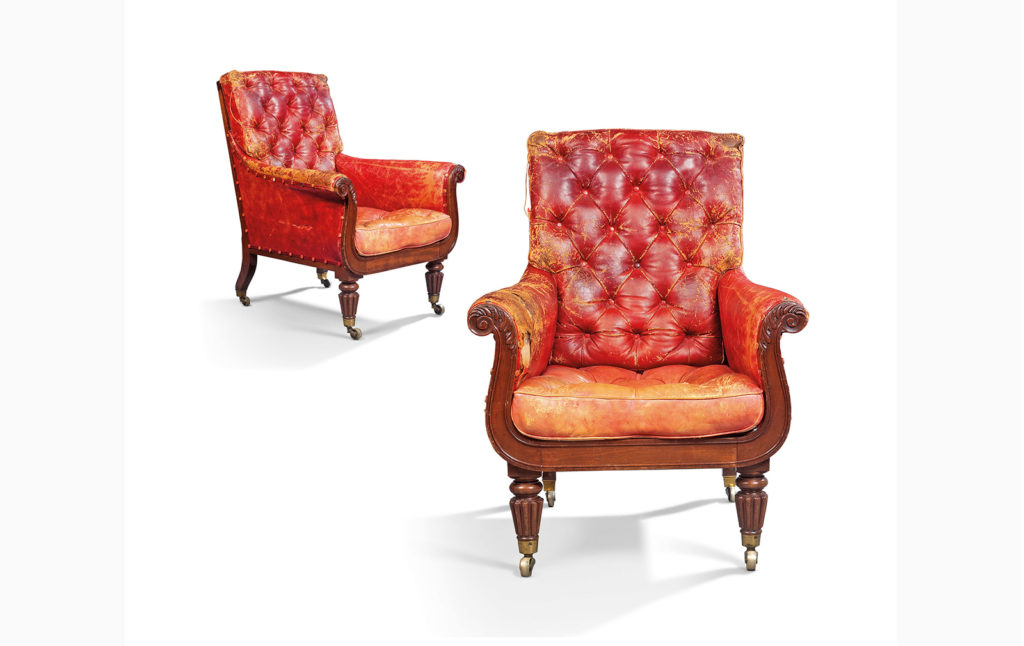 LOT 510: A pair of regency mahogany and caned library bergère, attributed to Gillows, circa 1815. (Estimate: £30,000 – £50,000.)