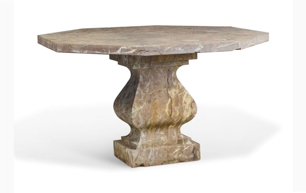 LOT 713: a marble octagonal table on pedestal base, 20th century. Acquired from Axel Vervoordt N. V., ‘S-Gravenwezel, Belgium, 1999. (Estimate