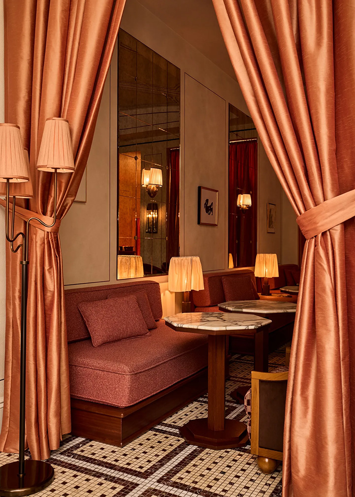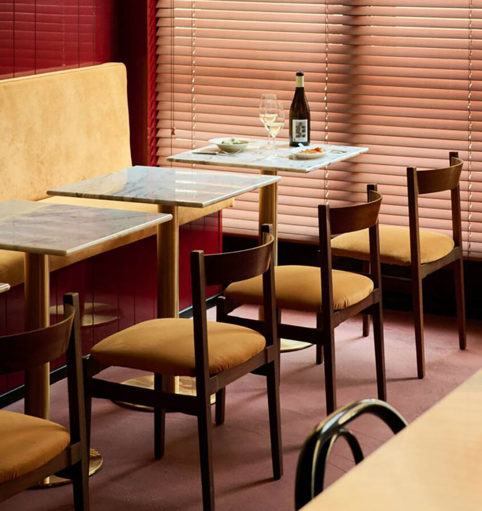 Blood-red wood panelling and rose flooring set the tone at this modern Italian that focuses on domestic red wines. The interiors were a collaboration between Diego Rossi and the trio of architects behind Oooh Studio, who balance out the claret colour with deep greens.