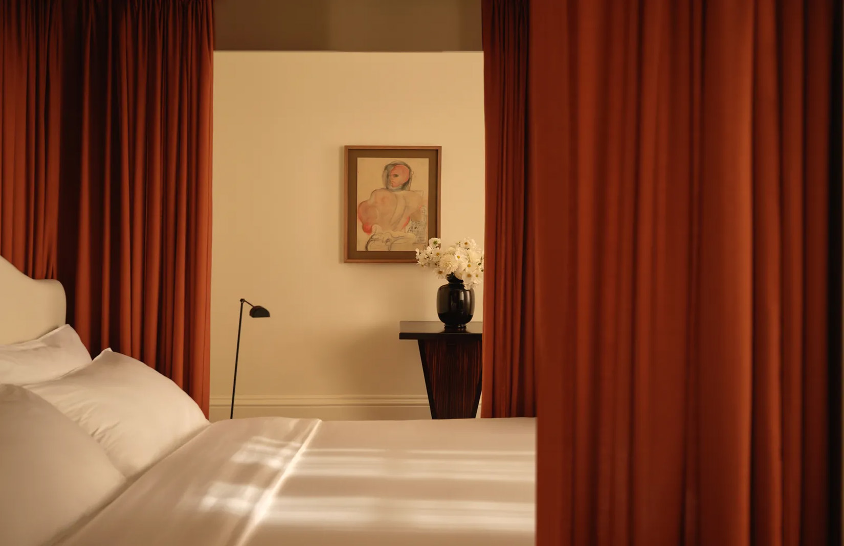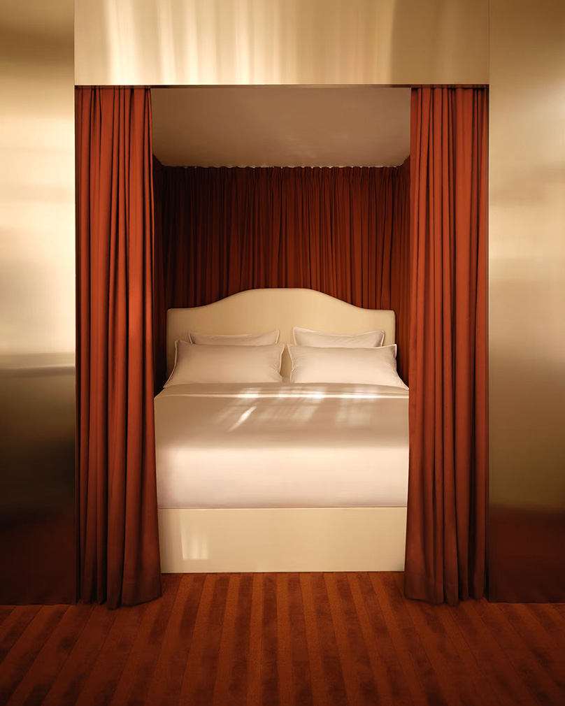 The first London flagship for this Swedish rug-maker is located in a red-brick Mayfair townhouse swathed in saturated fabric and, naturally, custom mohair rugs. The bedroom mock-up is draped in Grand Burnt Red fabric produced by the company, and it’s all thrown together by the interior design arm Nordic Knots Studio.