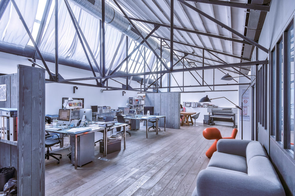 This 19th-century loft is lit by a grand, double-sloped glass ceiling, with a steel frame made by the Gustav Eiffel company. A truck garage until the end of World War II, the Paris property underwent a revamp in 2012 by architect Véronique Laurent, and its vast bays are now an open-plan living space.