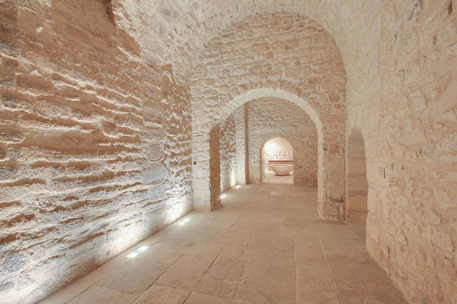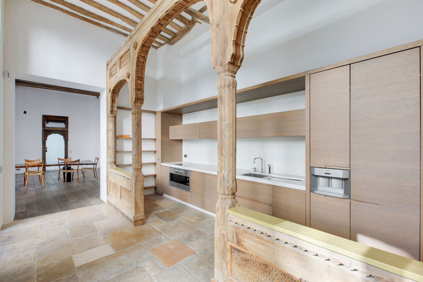 Squint, and you could almost be in rural France as this renovated historic mansion has a cottage garden-like terrace, stone walls and barn-like vaulted ceilings crossed with timber beams. The 17th-century house is centred around an interior courtyard. It features a ground-floor loggia, thick wooden doors with intricate carvings and a pool and wine cellar under cellar-level stone vaults.