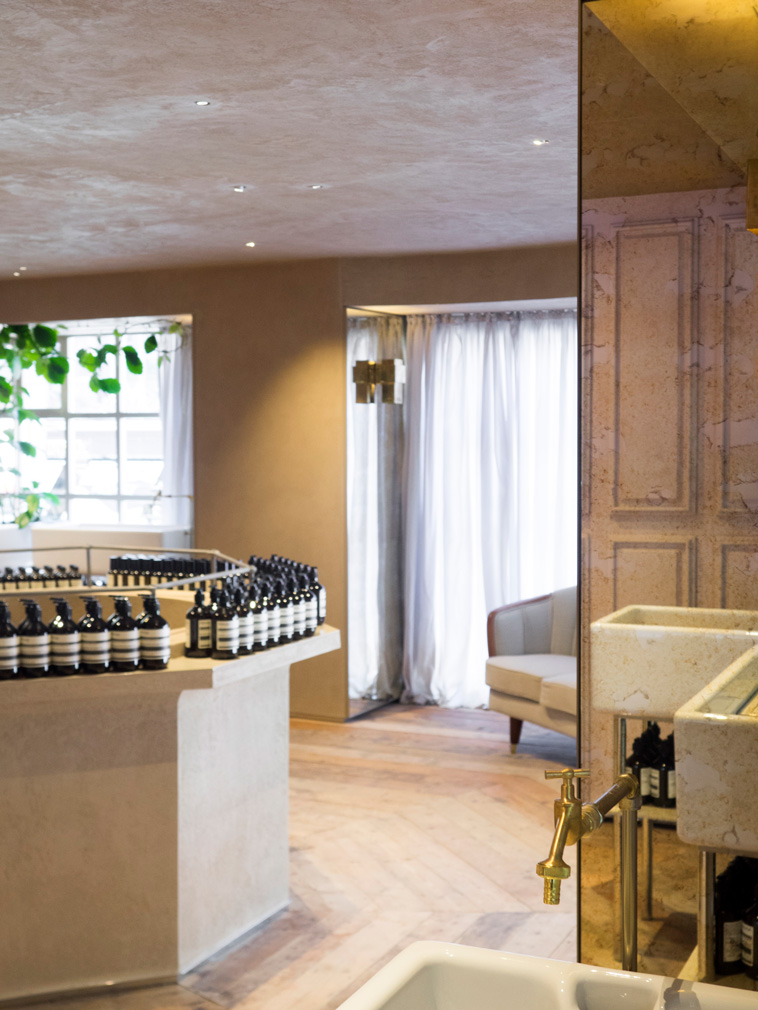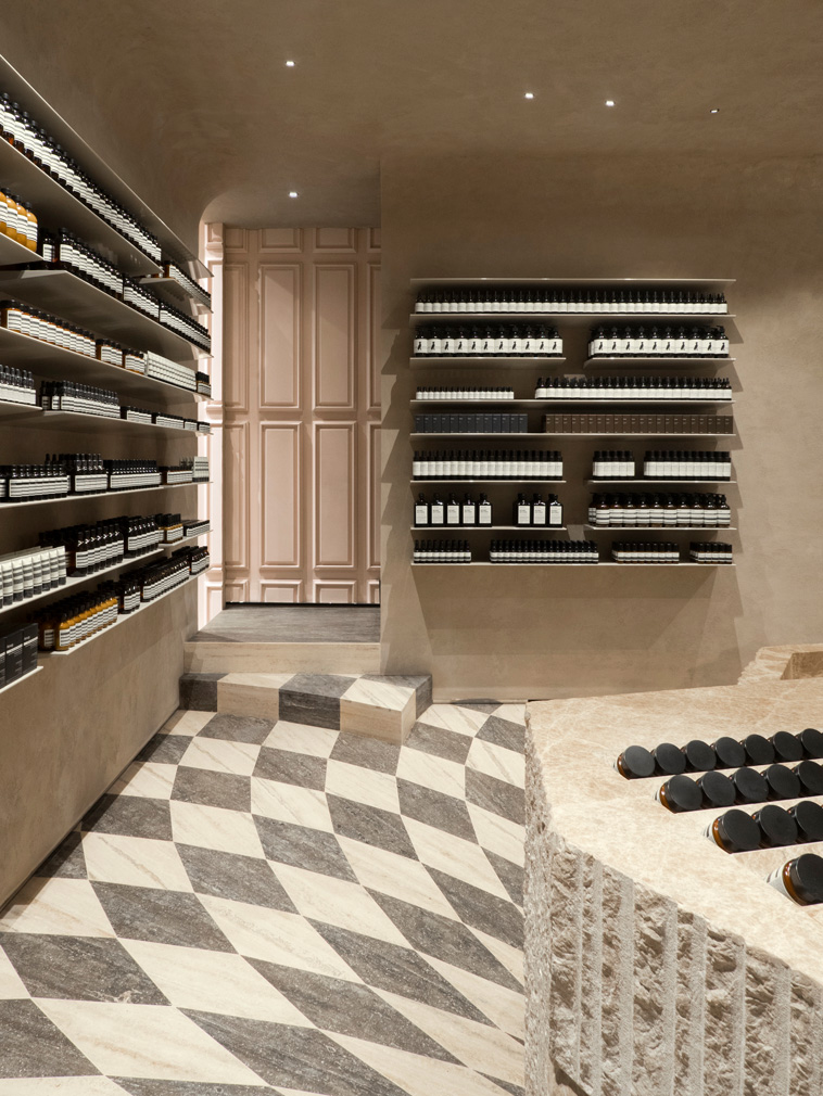 Call Me by Your Name director Luca Guadagnino has collaborated with skincare brand Aesop to create the interiors of its new London store inside the storied Piccadilly Arcade.