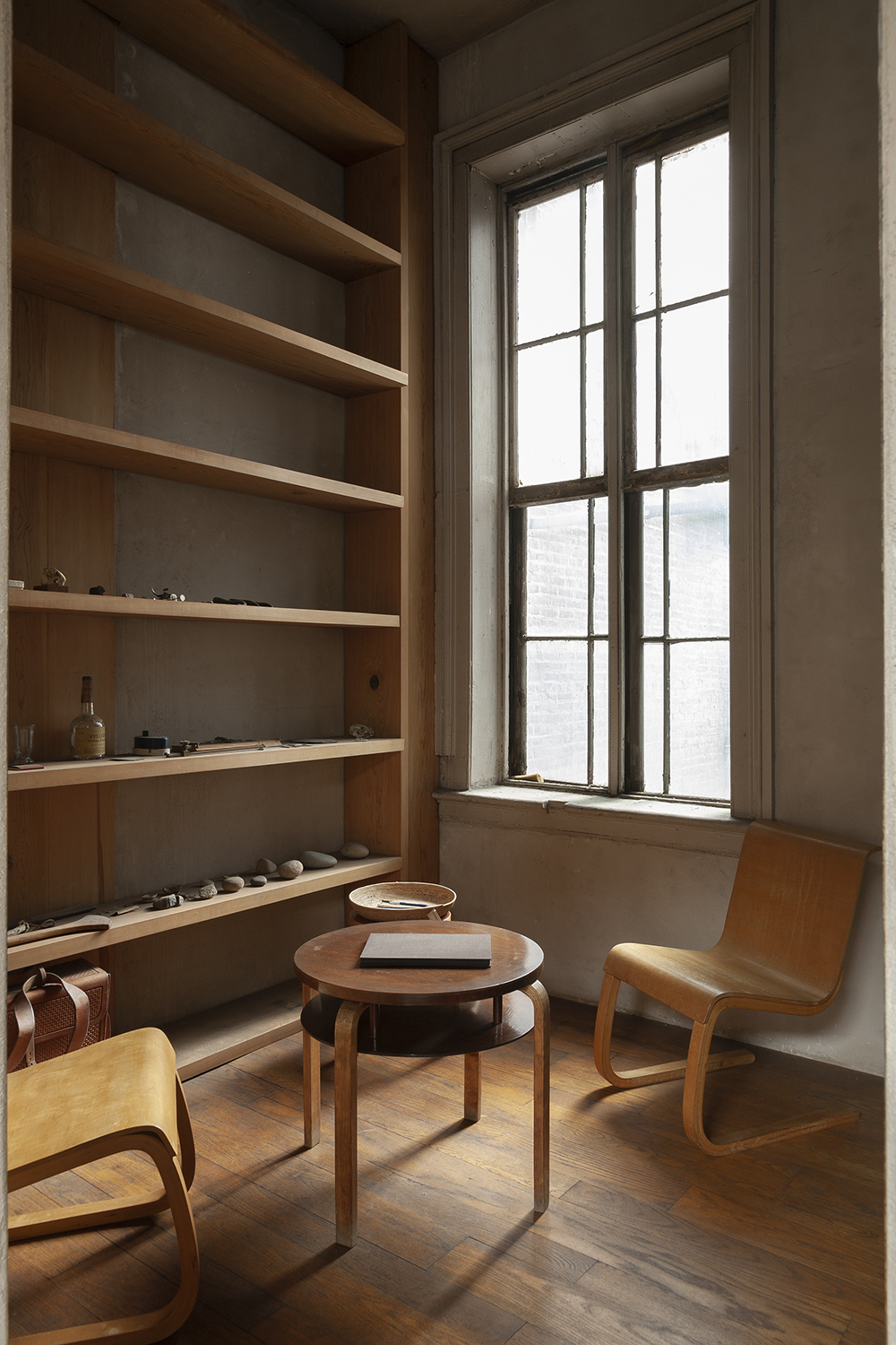 In this living space, a bookcase is a bookcase, designed to be used as such. Is it the ideal habitat for a Donald Judd furnishing? Is there an ideal habitat? ‘There isn’t an ideal environment, there are just good ones and bad ones but, in each case, they are not all one type,’ says Flavin. To illustrate, he paraphrases Leo Tolstoy’s thoughts on family. ‘Good spaces are all good in different ways, but bad spaces are bad in different ways also.’