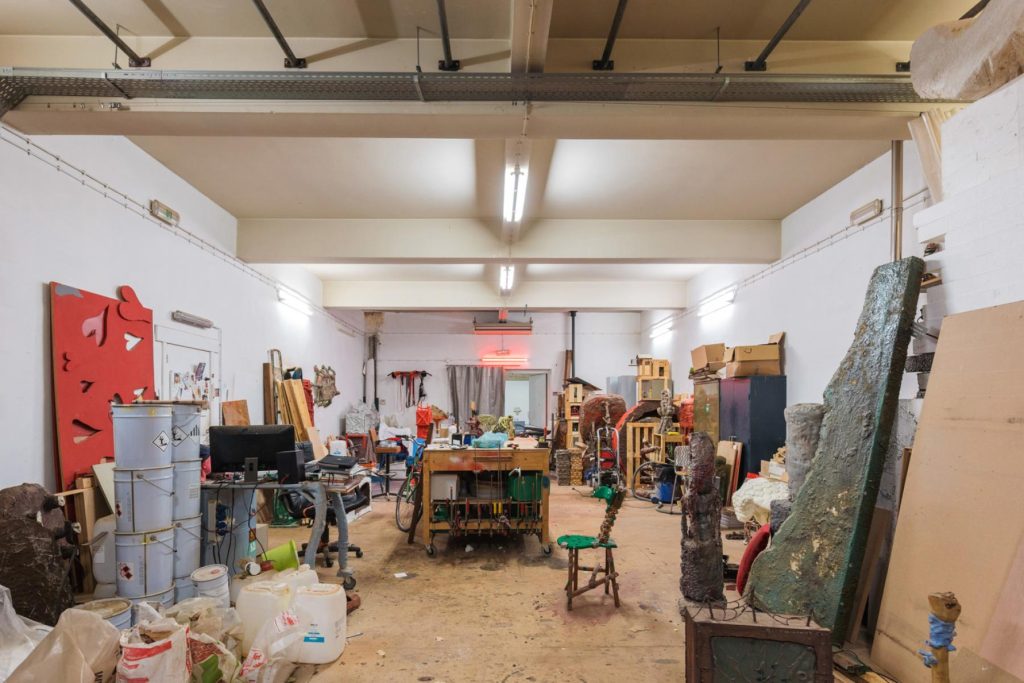 Behind the original brick façade, a vast 270 sqm main hall opens under a 13m roofline, where steel trusses, towering windows and characterful brickwork create a dramatic backdrop. Above the atelier, a 120 sqm light-filled living space offers an open kitchen, bedroom and bathroom, while a separate studio and a large office with garden views extend the possibilities. At the rear, two additional workshops and storage areas add flexibility for creative or professional use.