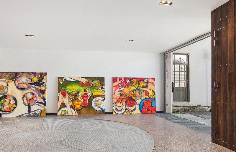 The ground floor space has been configured as a soaring gallery space, hung with Fred Cress original artworks, and flexible four car ‘drive-in-drive-out’ garage with a turntable platform. To the rear are two bedrooms as well as a sitting room and small courtyard.
