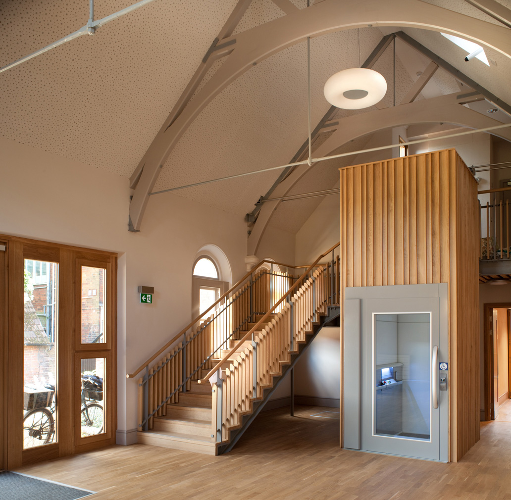 Original exterior brickwork of the chancel also remains and is visible in the foyer, while new oak flooring and joinery has been added throughout to link past and present.