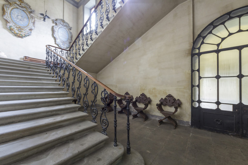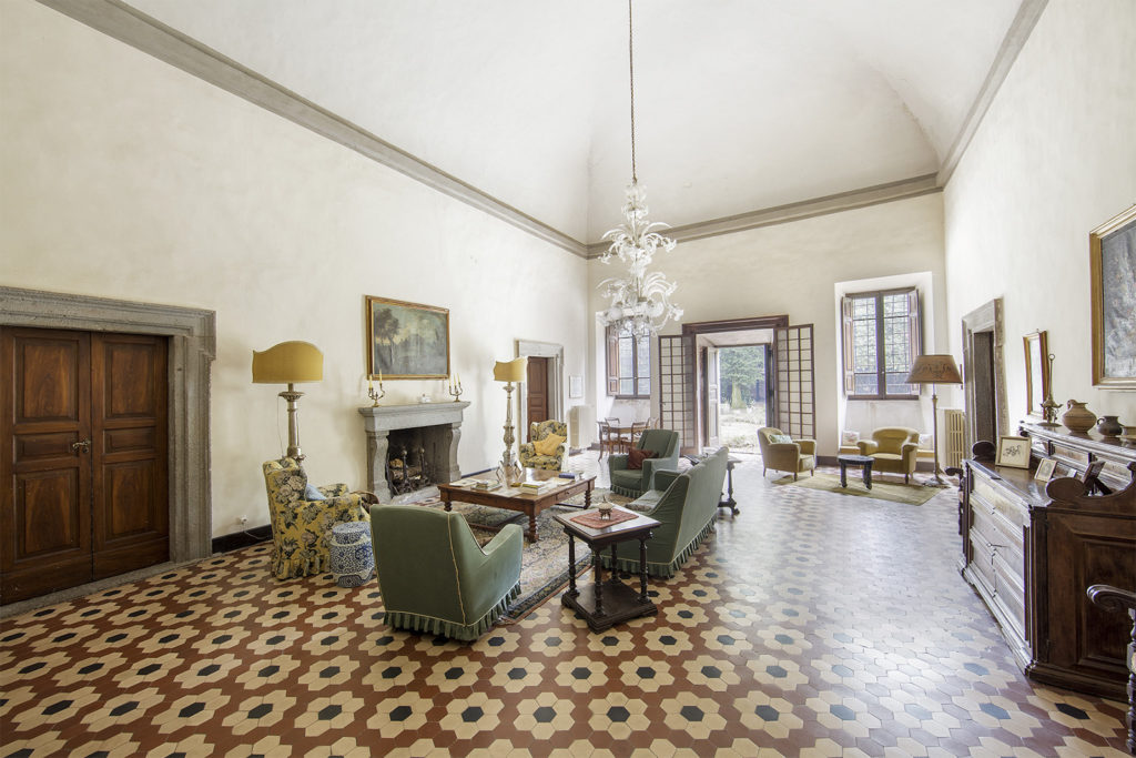 Brightly coloured tiles cover the floors of the Lazio property – listed with Italy Sotheby’s International Realty for €2.5m – which features an imposing stone lobby and staircase. Its collection of frescoes are mostly still intact, and cover the ceilings of its many rooms.