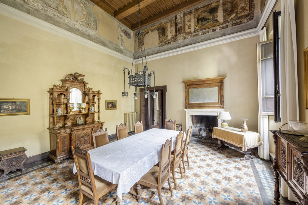 The 10-bedroom Acquapendente property unfurls around a central courtyard with a covered walkway. It was constructed in 1581 by architect Ippolito Scalza, and the three-storey palazzo is brimming with period details including a spiral staircase that leads up to a top floor and tower with views across the city.