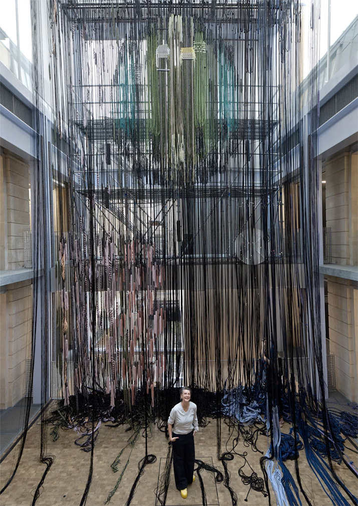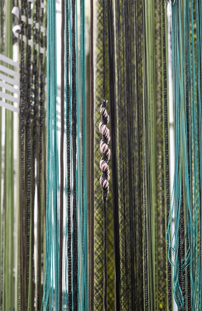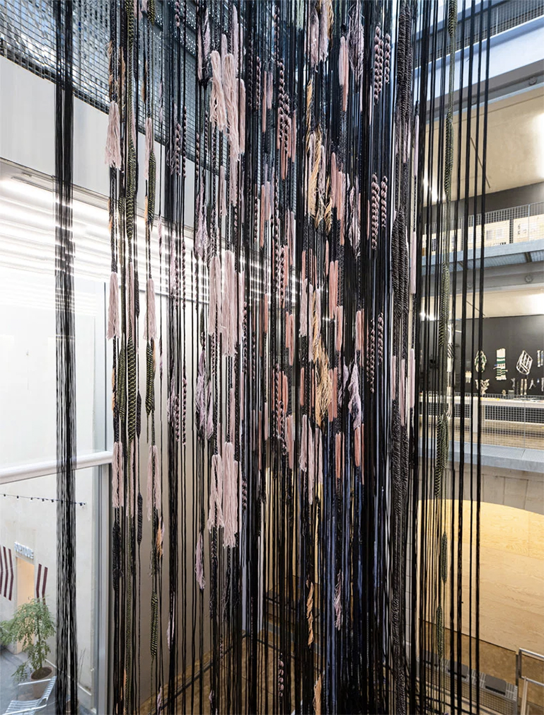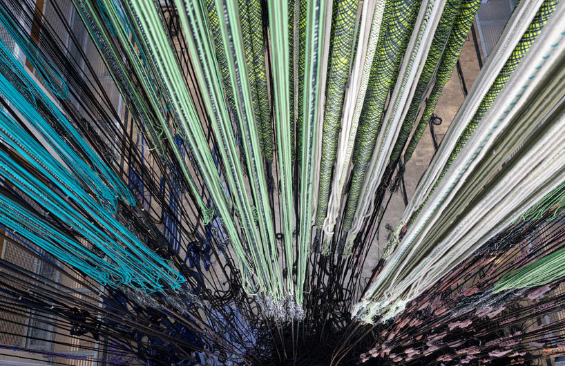 Strands of twine wrap around the courtyard of Paris’ Lafayette Anticipations gallery, which has been transformed into a huge fabric factory by Hella Jongerius.