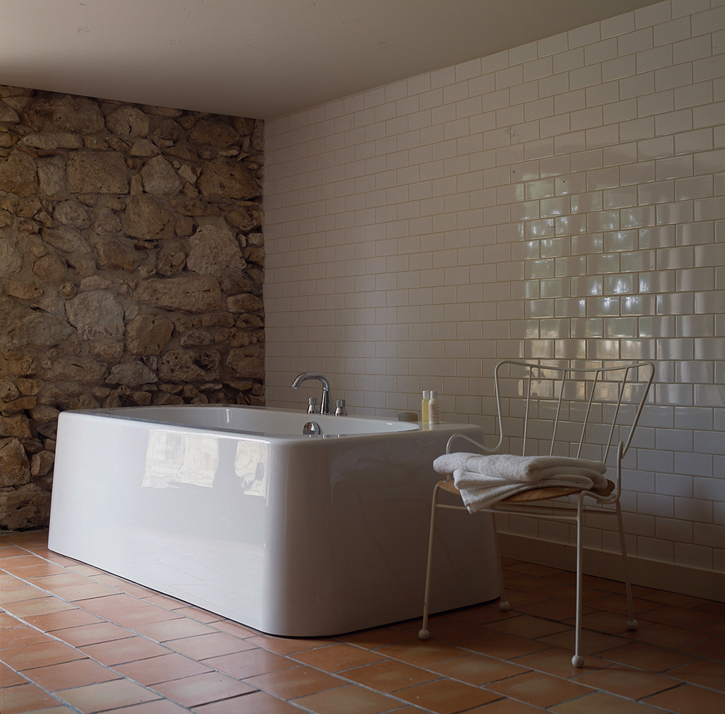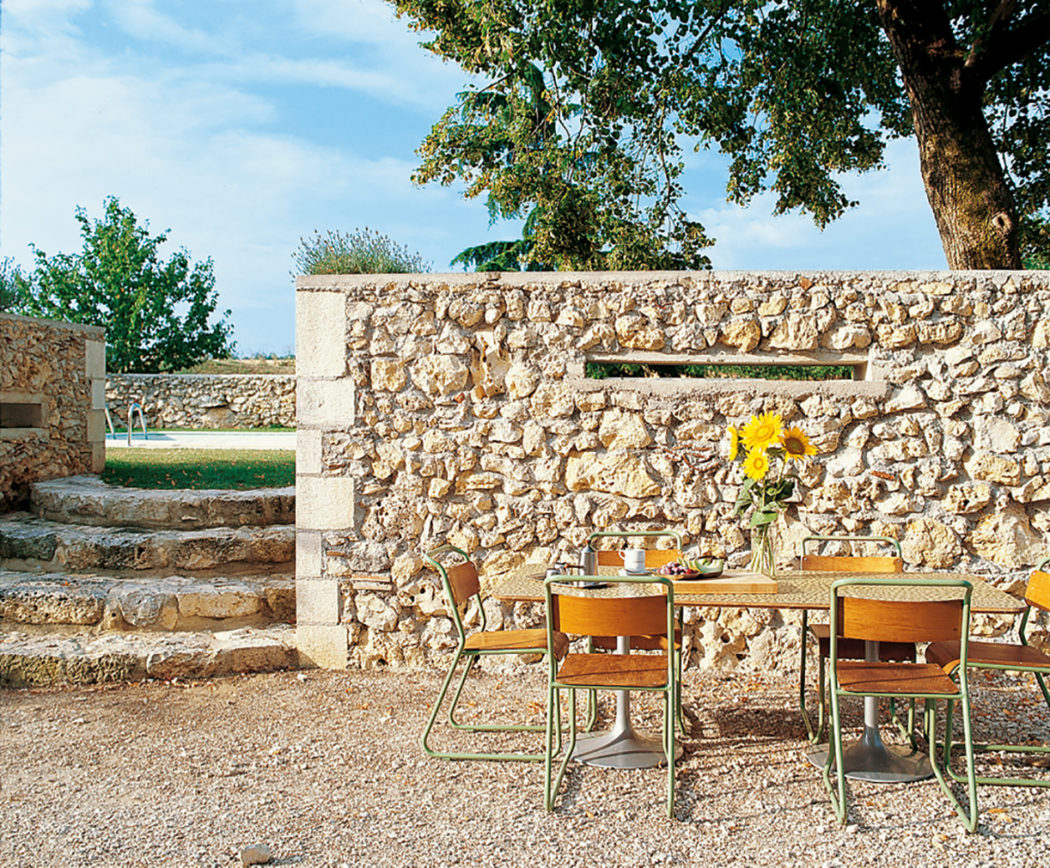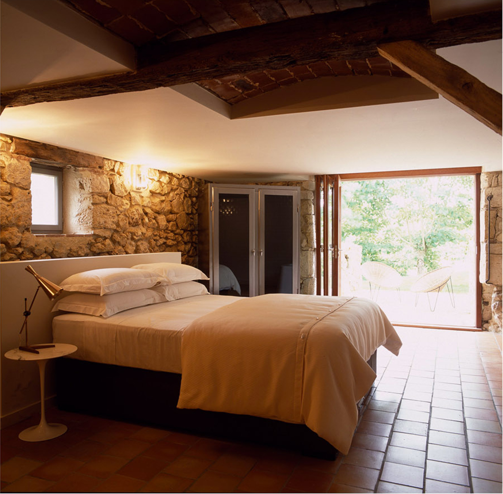 Inside the stone walls of this restored 19th-century French farmhouse is a contemporary retreat designed with creatives in mind.