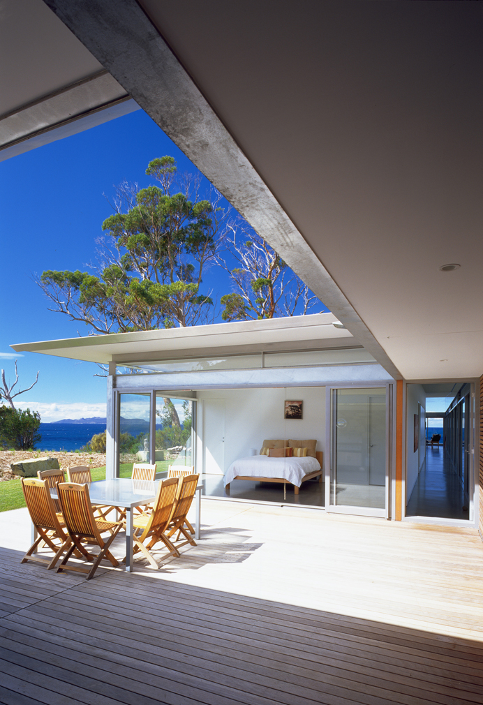 This transparent beachfront home treads lightly on its dramatic settling on Tasmania’s eastern coast.