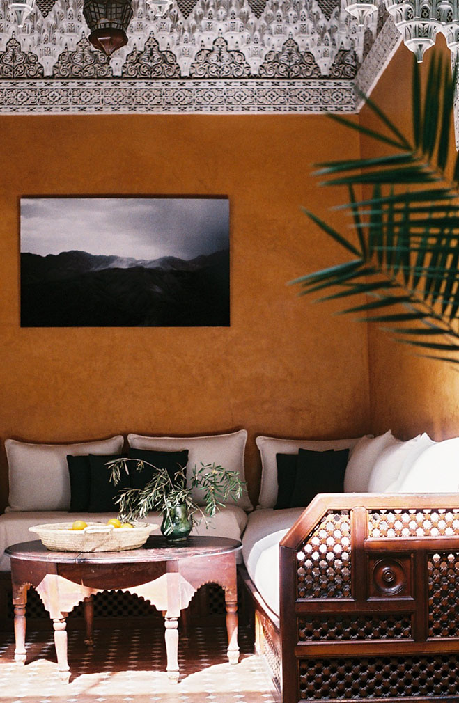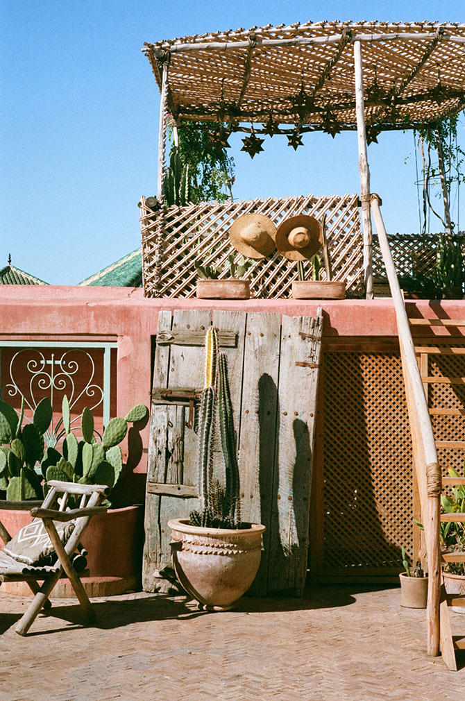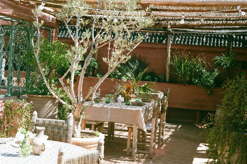 As with traditional riads, the courtyard is the epicentre of the Moroccan holiday home, and a large fountain holds basking turtles and large palms. Up above, the sun-drenched rooftop terrace is home to a vegetarian restaurant helmed by hometown Chef Mohamed. Though open to the public at lunch, the restaurant is reserved for the exclusive use of guests in the morning, who can enjoy views over the nearby Koutoubia Mosque and the Atlas Mountains in the distance as they tuck into their avocado toast.