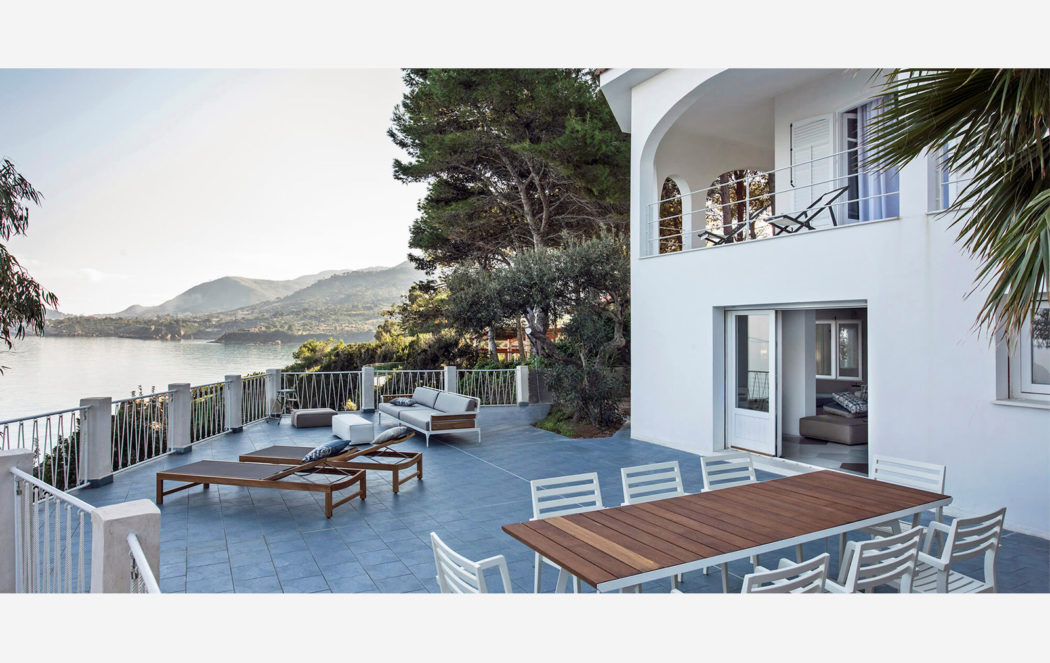 Step outside the Sicilian holiday home – available to rent from €900 per day via I-escape – and there’s a huge terrace with alfresco dining and seating areas that make the most of views across the bay.