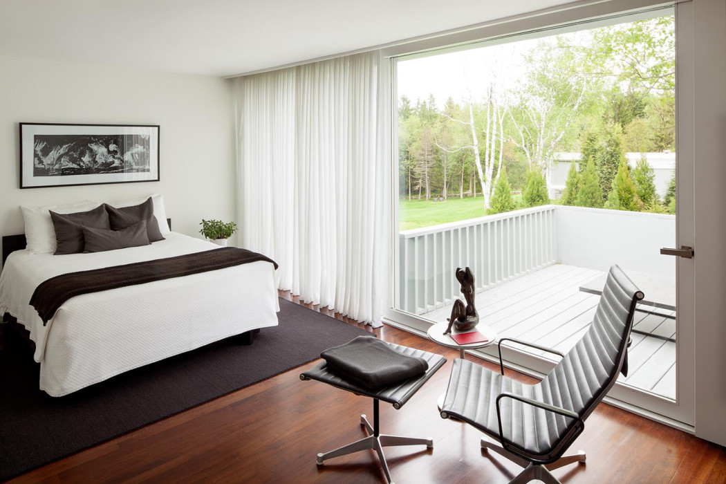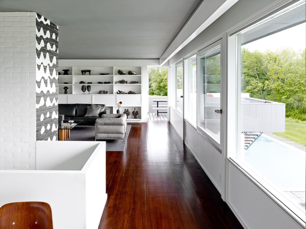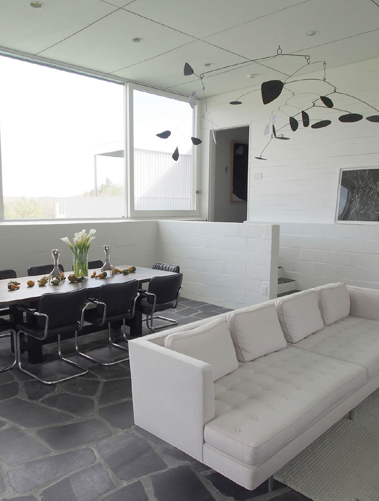 But the nine-bedroom, 3,200 sq ft Stillman House stands apart, particularly with perks that include a poolside mural designed by artist Alexander Calder and another inside by Xanti Schawinsky. The pool also features a concrete diving platform that takes a similar shape to the canopy Breuer designed for the Whitney Museum.
