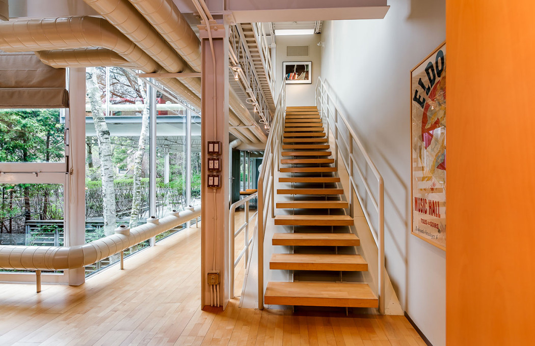 The three-bedroom home – for sale via The Thompson Team for $4.695 CAD (£2.5 million) – was built on steel stilts on the edge of a wooded ravine. This enabled the owners to slide a glass box beneath the building in the 1980s, which holds a garden-level living area.