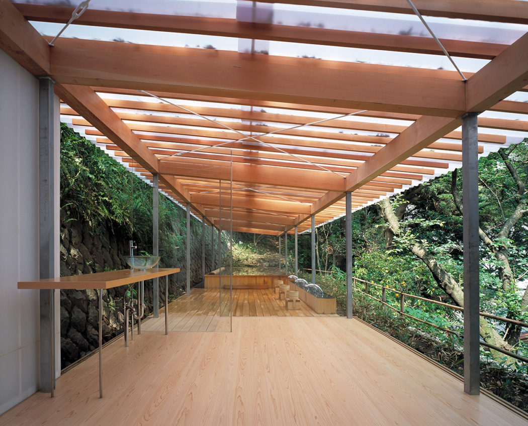 Kengo Kuma’s Kogohi Bathhouse in Horai 2005. Photograph: Mitsumasa Fujitsuka. Courtesy of Kengo Kuma & Associates