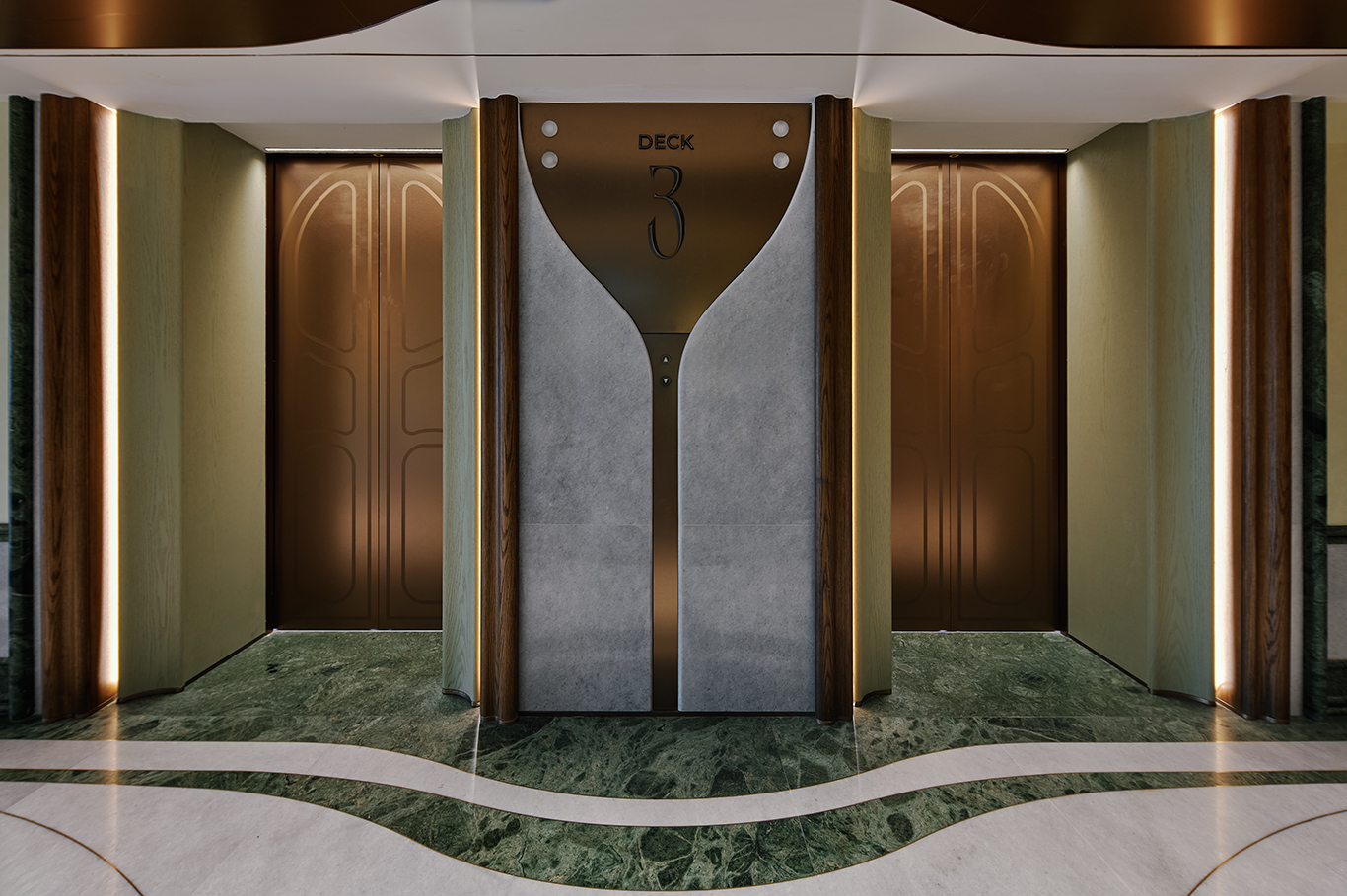 Shao has not erased that layered history but rather re-scripted it elegantly. The liner now houses multiple boutique hotels, waterfront dining, French and regional Chinese restaurants, dessert-only cafes, theatres and music rooms — much like the cruise ship it never was. Design-wise, it borrows some of the most expressive hallmarks of art nouveau, reinterpreted with theatrical flair. The interiors are enhanced with unconventional expressions like silver-studded pillars and sweeping architectural curves. The sculptural lighting is deployed to awe, its repetition creating rhythm, texture and symmetry.