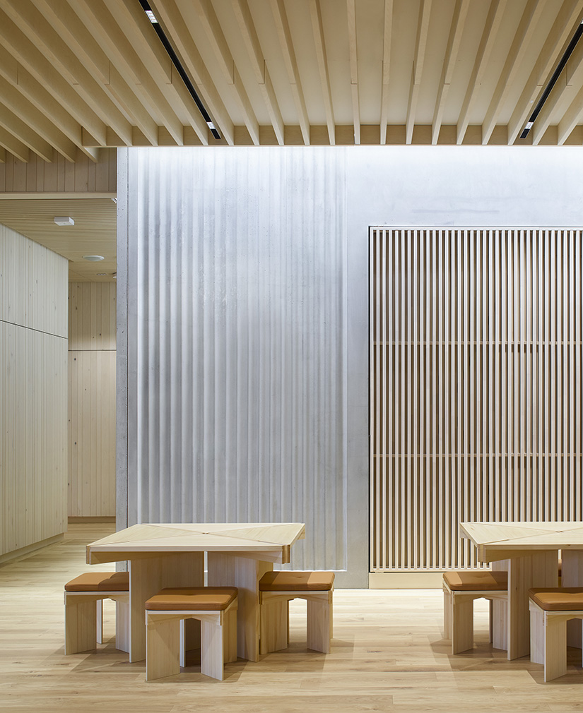 Conceived by NOA alongside interior architects Scenario Interiørarkitekter, I-D Interiørarkitektur og Design and Rambøl, the common thread among the interiors is ‘subtlety with detailed materiality’, according to NOA partner Knut Hovland. He points out furniture with chamfered edges to match the window surrounds, and concrete panels impressed with unusual fluting. ‘The precast concrete panels don’t read brutal, so they’re not overwhelming,’ he says. ‘The feeling is considered and seamless.’ The roomy four-metre ceilings are ‘more sustainable’, he says, in part because they draw in more light.