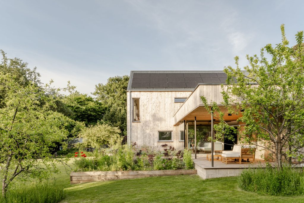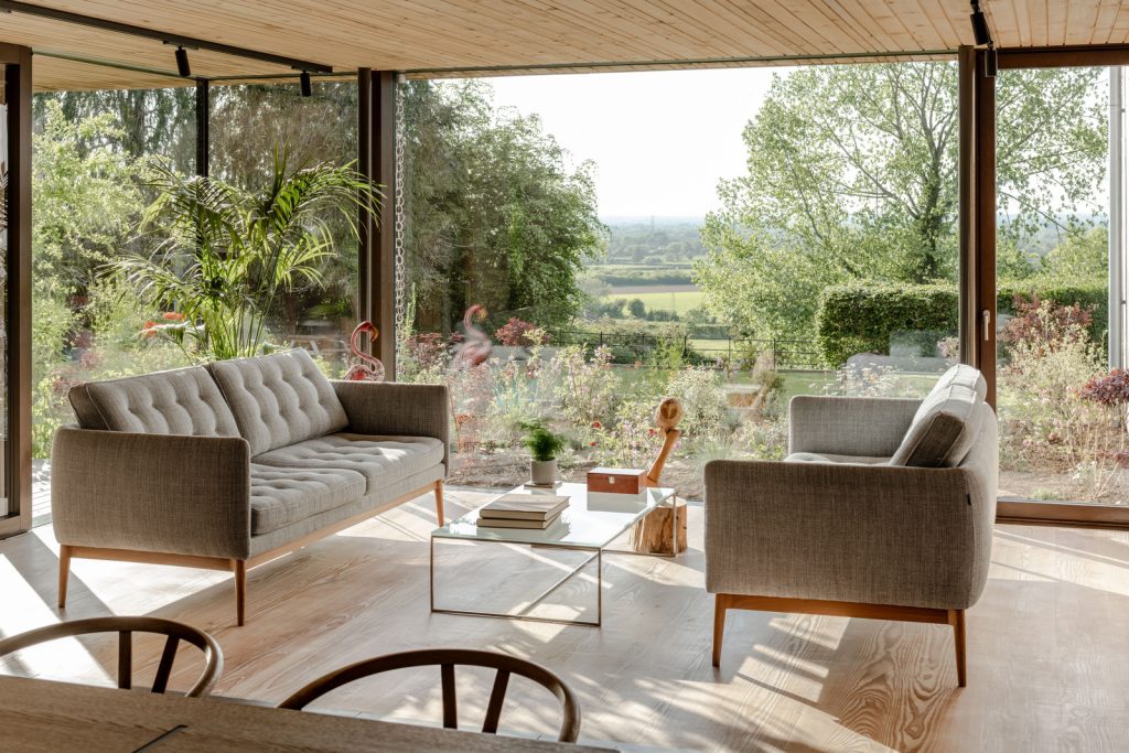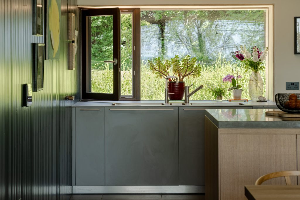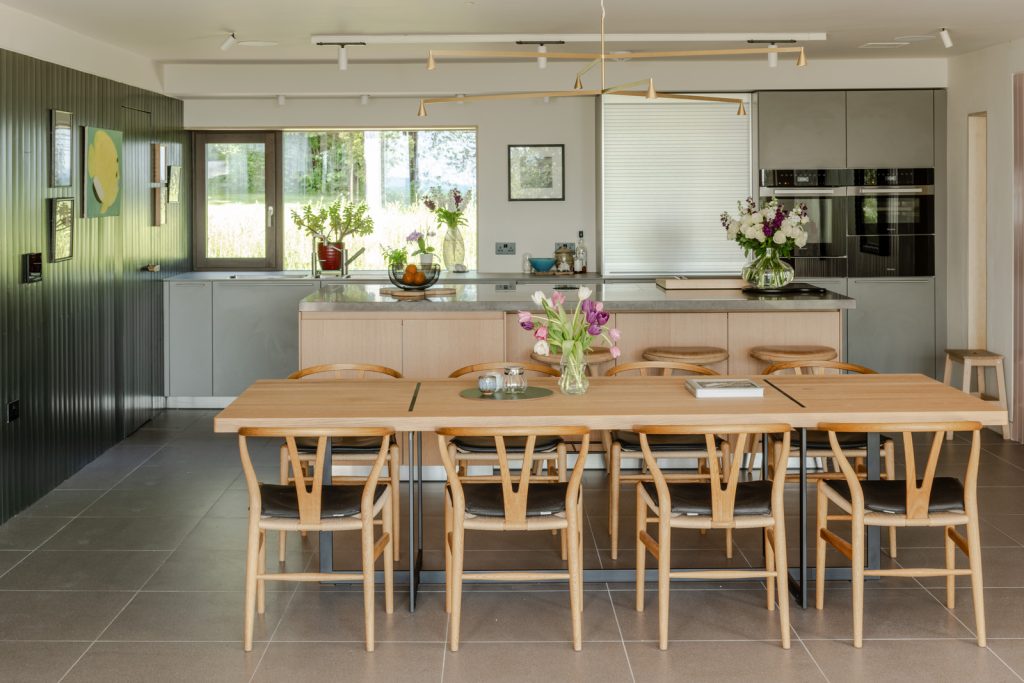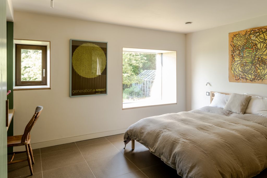 Known as Old Orchard, the house is smart-wired — lighting, music and blinds are controlled by a customisable KNX-based building management system. And the eco credentials make the site incredibly efficient. These include 22 solar panels, a 16 kWh battery, triple-glazed Ecovia windows, an air-to-water pump and softener, and a mechanical ventilation and heat recovery system with a built-in duct heater.