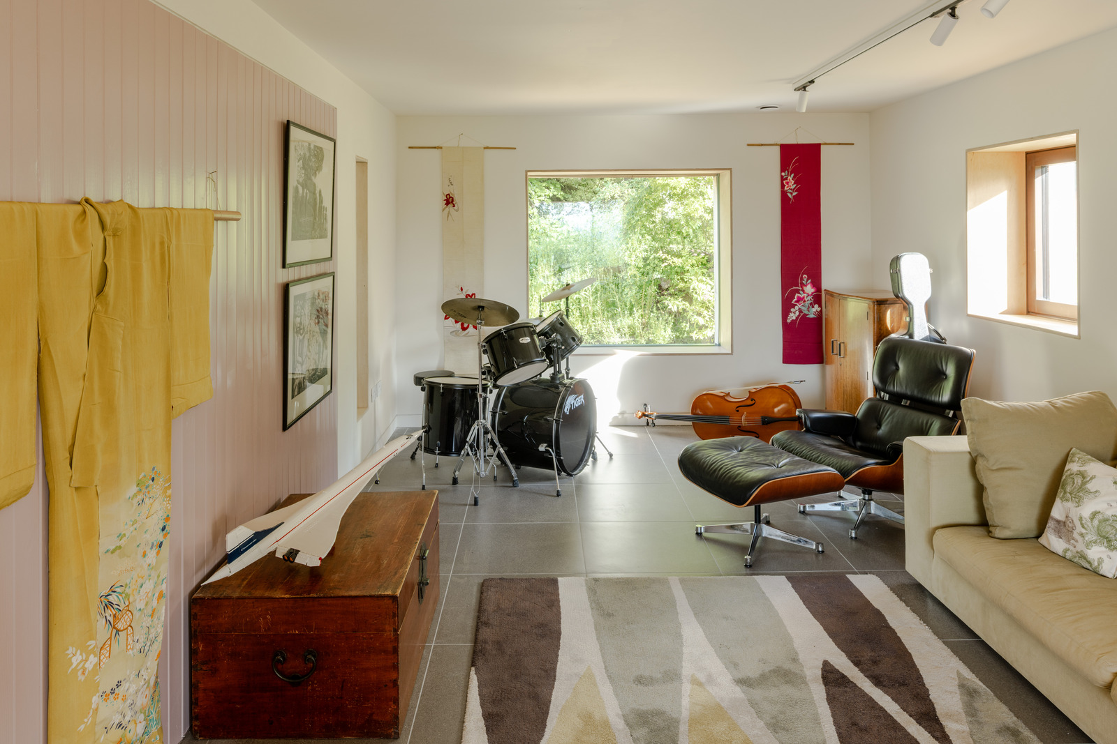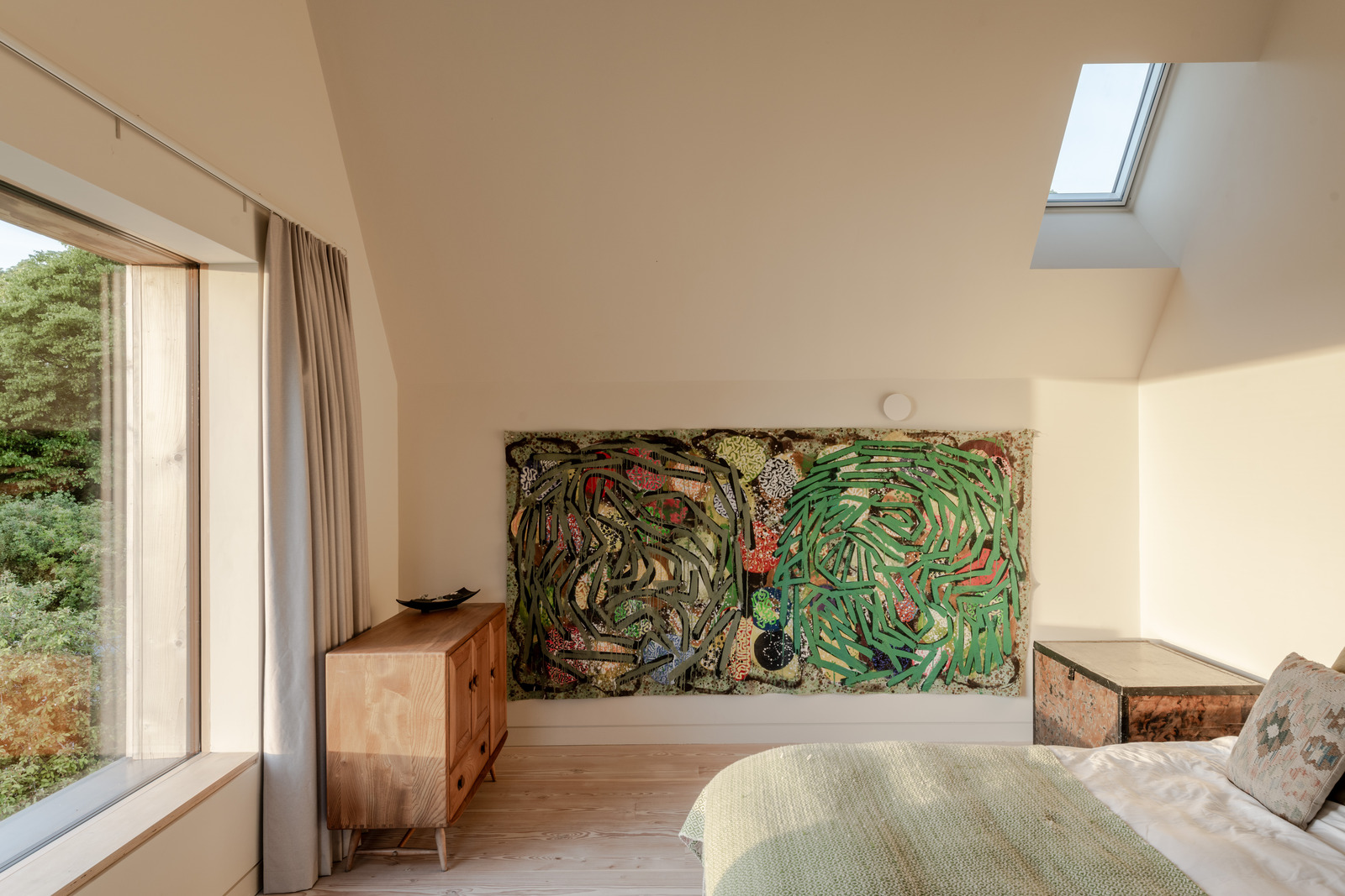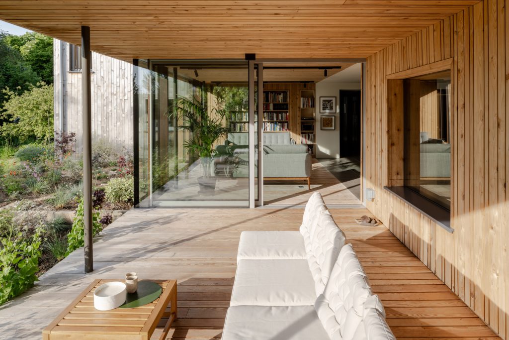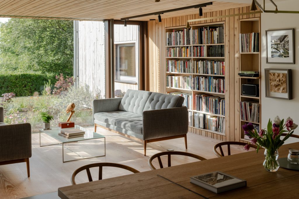 Known as Old Orchard, the house is smart-wired — lighting, music and blinds are controlled by a customisable KNX-based building management system. And the eco credentials make the site incredibly efficient. These include 22 solar panels, a 16 kWh battery, triple-glazed Ecovia windows, an air-to-water pump and softener, and a mechanical ventilation and heat recovery system with a built-in duct heater.