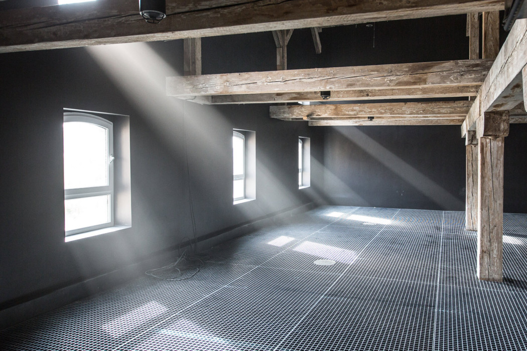 Renovation works to the buildings have been designed to enhance the sonic experience. The industrial space has been stripped back to its shell, with the structural beams doubling as a grid for 4DSOUND system’s 45 omni-directional speakers and 8 subs. Meanwhile, a heavy-duty polymer floor has been fitted to enable soundwaves to travel through the volume of the building uninhibited.