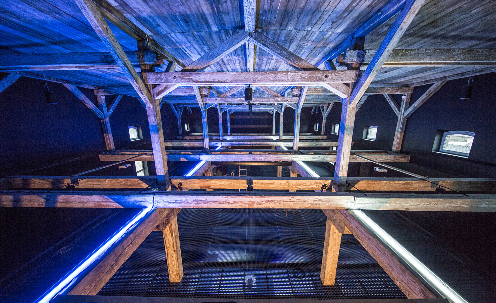 Renovation works to the buildings have been designed to enhance the sonic experience. The industrial space has been stripped back to its shell, with the structural beams doubling as a grid for 4DSOUND system’s 45 omni-directional speakers and 8 subs. Meanwhile, a heavy-duty polymer floor has been fitted to enable soundwaves to travel through the volume of the building uninhibited.