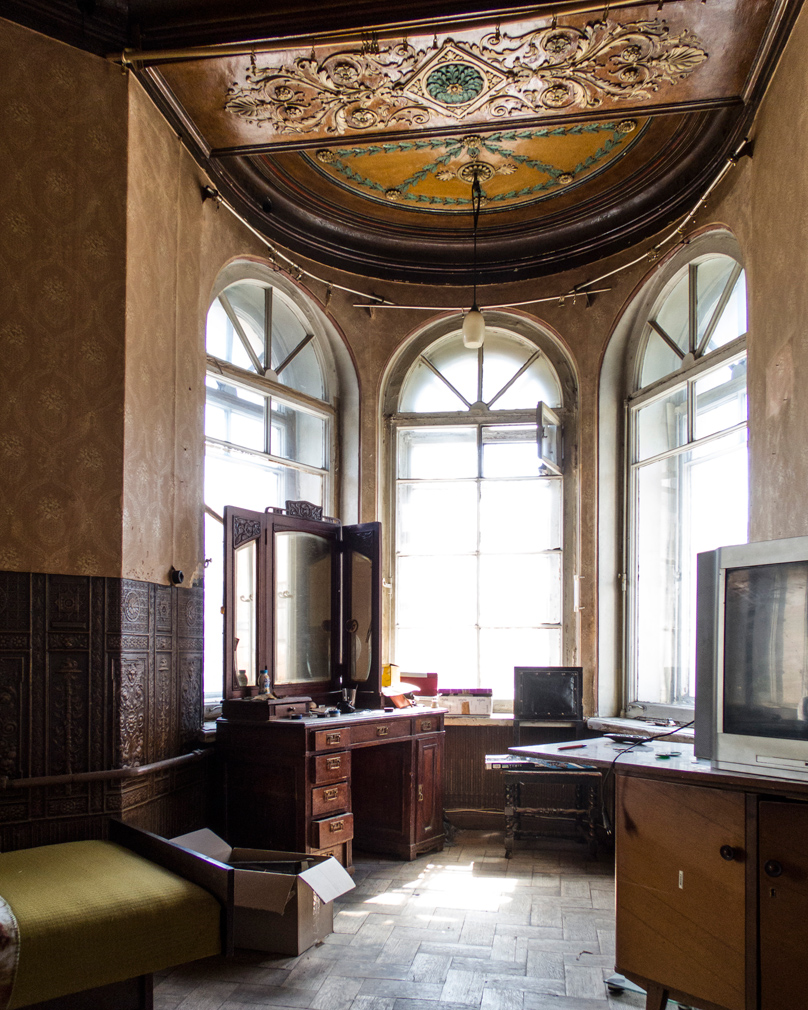 Kosmin’s images – which he shares on Instagram – take us into these private spaces, giving us glimpses of maze-like layouts, eccentric mishmashes of 19th-century period architecture and basic facilities, and dimly-lit, atmospheric rooms crammed with books, pictures and furniture.