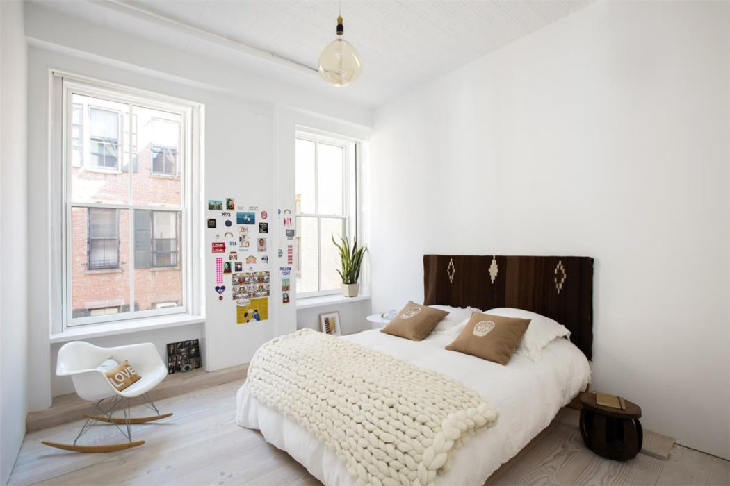 According to the listing, award-winning architecture firm Messana O’Rorke was enlisted to renovate the Soho home, which was previously the live/work gallery space of dealer Charles Cowles. It is now configured as a spacious four-bedroom apartment, and Morgan has painted its walls, 12-ft ceilings and pine wood floors white.