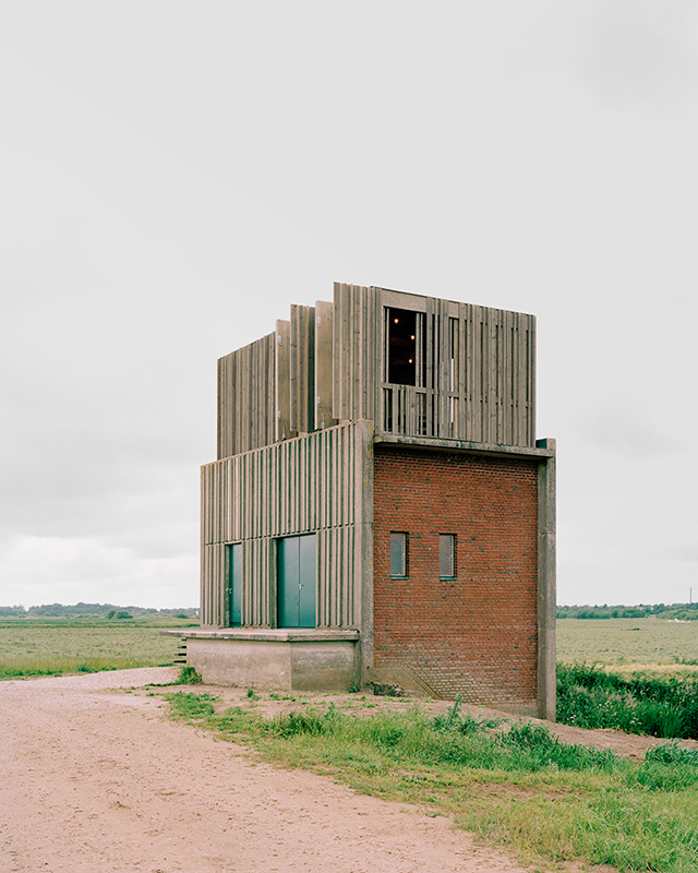 ‘The pump houses were built in the 1960s, when the river was straightened out to create agricultural land,’ says Soren Johansen, co-founder of Johansen Skovsted Arkitekter, which was tasked with the structures’ adaptive reuse. Built to drain excess water from the new farmland back into the river, the buildings became largely redundant when the landscape was restored to its original state in 2002, leaving their upper parts without use.