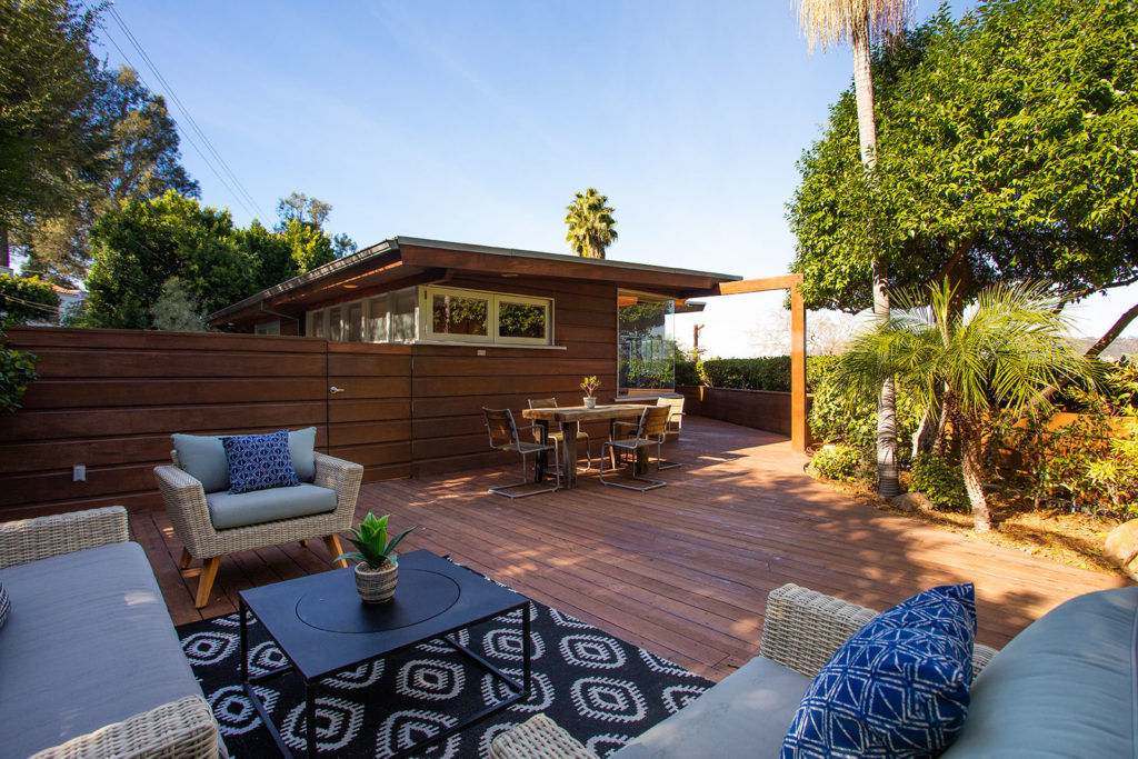 The Davies Residence is on the market via Joanna Suhl and Bobby Rodriguez of Compass for $1.175m. As well as two bedrooms, the Los Angeles property has extensive decking and landscaped gardens that bed into the canyon.
