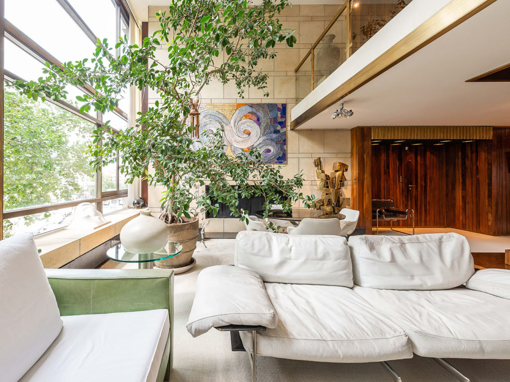 The 300 sqm duplex – on the market via Brussels Sotheby’s International Realty for €990,000 – sits on the third and fourth floors of the heritage listed structure by architect Jacques Cuisinier in the Schaerbeek neighbourhood of the city.